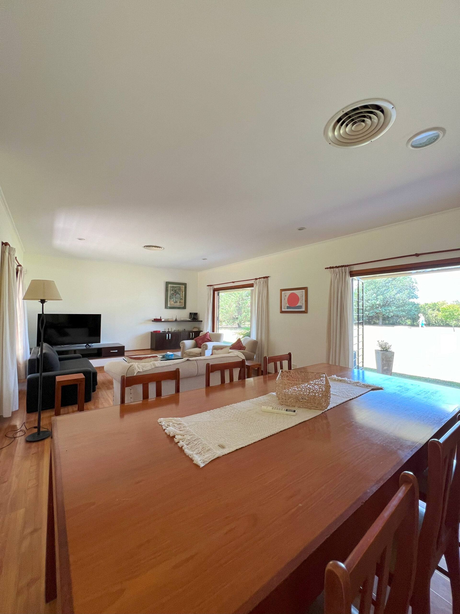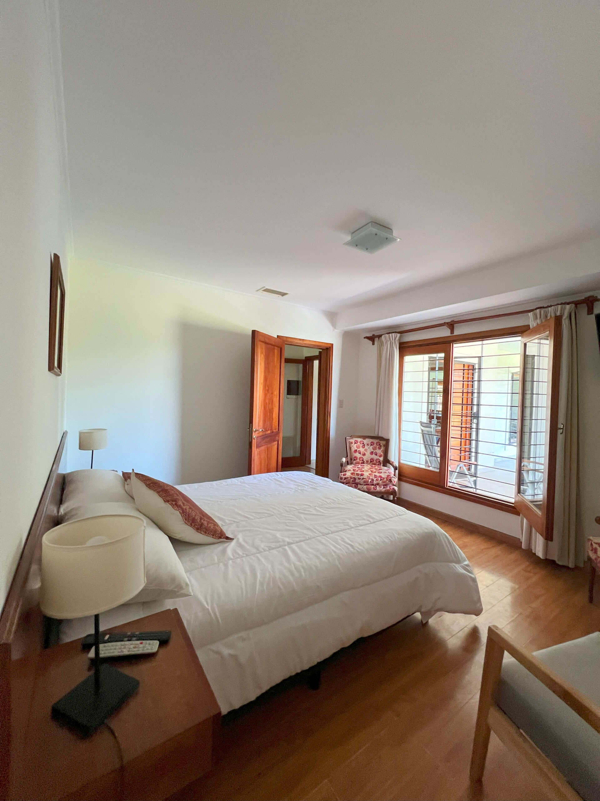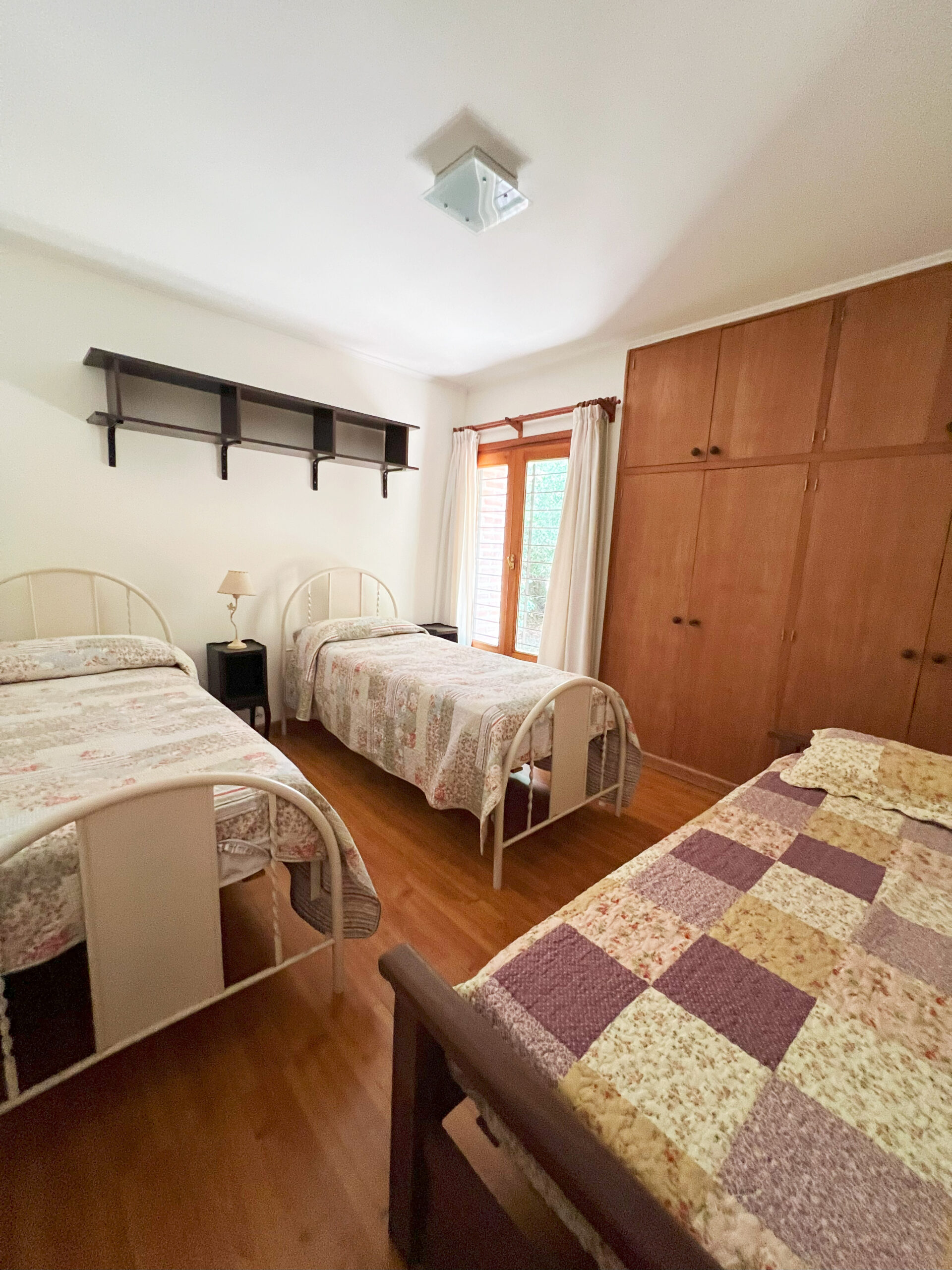 La casa cuenta con una habitación matrimonial con vestidor, una habitación con dos camas y sofá cama, baño completo, cocina completa con todos los utensilios. Amplio living-comedor, quincho techado con parrilla, lavadero y pileta. Es un terreno de 3.000m2 y tiene capacidad hasta seis personas.