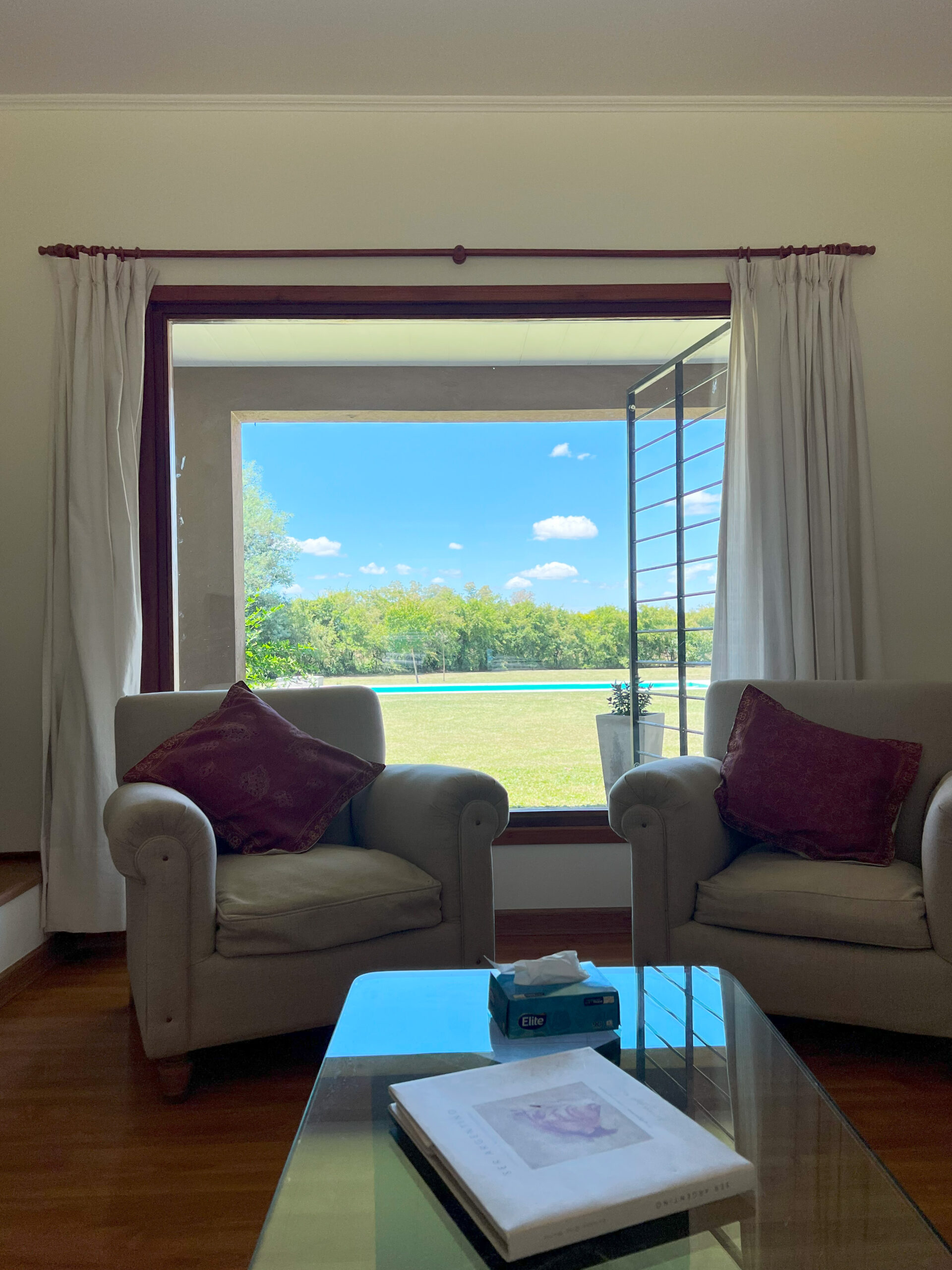 La casa está en un predio muy amplio rodeado de árboles y plantas. Mantenemos el espacio todas las semanas para que puedas disfrutarlo. ¡Cuidalo vos también!